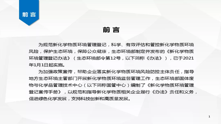 一起來(lái)學(xué)習一下官方發(fā)布的《新化學(xué)物質(zhì)環(huán)境管理登記宣傳手冊》